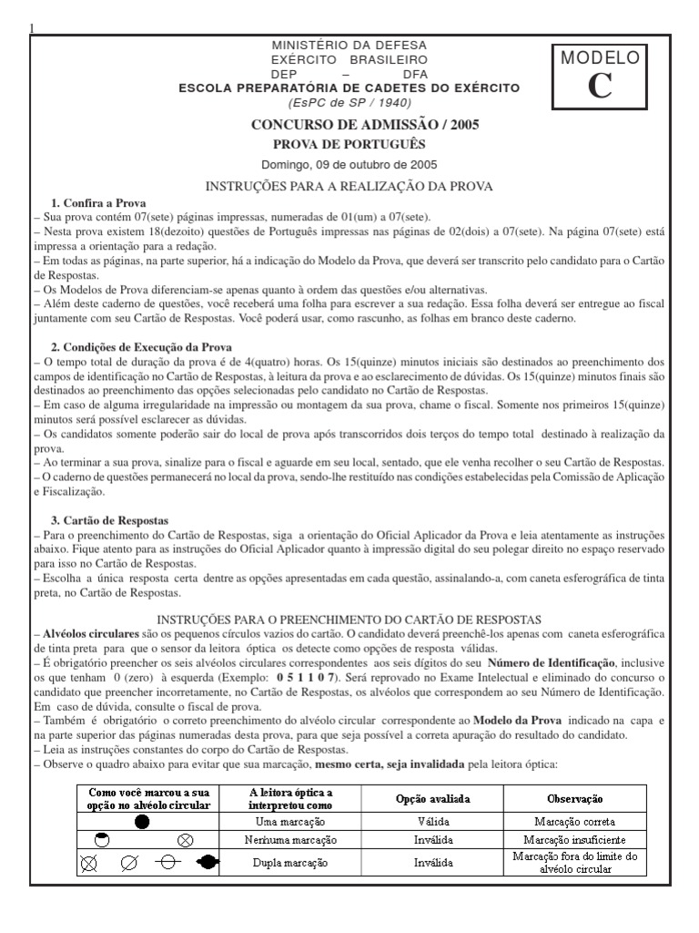 – Em todas as páginas, na parte superior, há a indicação do Modelo da Prova, que deverá ser transcrito pelo candidato para o Cartão