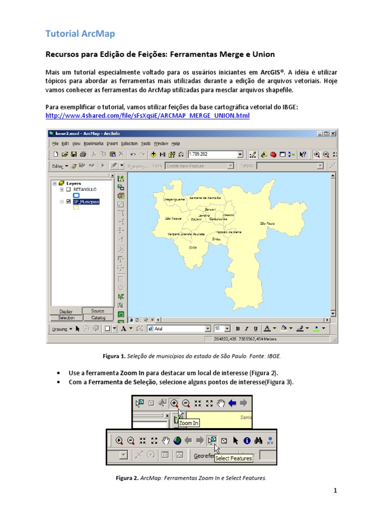Mais um tutorial especialmente voltado para os usurios iniciantes em ArcGIS. A idia utilizar tpicos para abordar as ferramentas mais utilizadas durante a edio de arquivos vetoriais. Hoje vamosconhecerasferramentasdoArcMaputilizadasparamesclararquivosshapefile. Paraexemplificarotutorial,vamosutilizarfeiesdabasecartogrficavetorialdoIBGE: http://www.4shared.com/file/sFsXqsiE/ARCMAP_MERGE_UNION.html