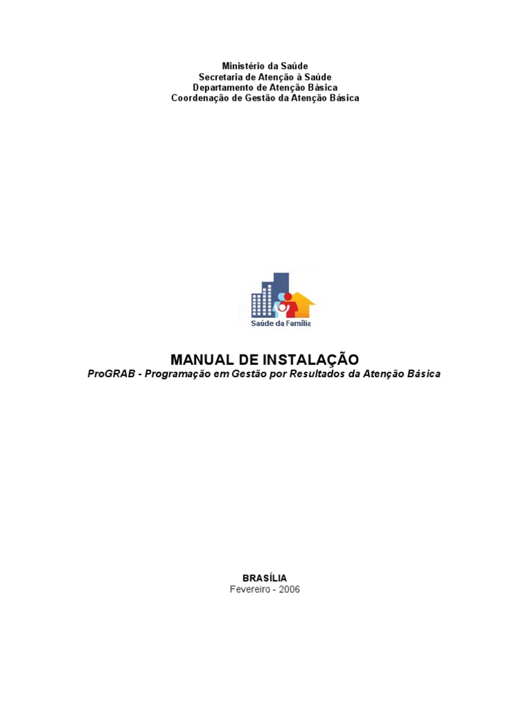 1 Download do Sistema PROGRAB Para iniciar o processo de download do Sistema PROGRAB acesse o site do Departamento de Ateno Bsica do Ministrio da Sade no endereo http://www.saude.gov.br/dab. Na barra esquerda da pgina principal, mdulo Gesto por resultados, clique no item PROGRAB - Download. (fig. 01)