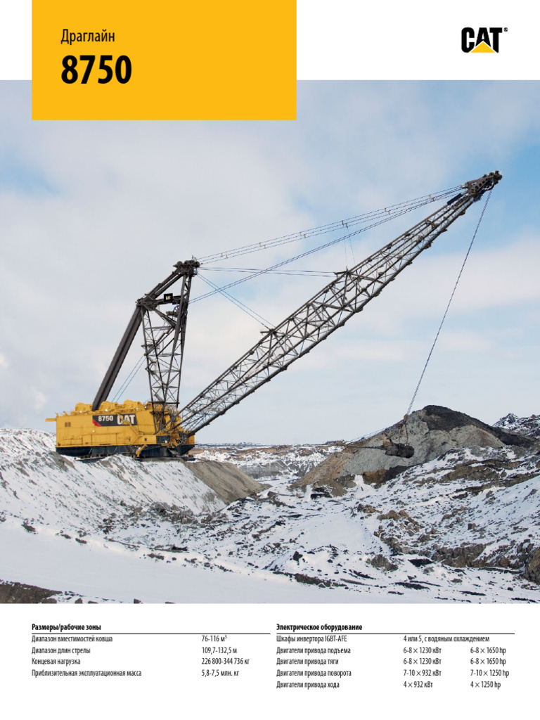стоимости в расчете на тонну модель 8750 является флагманом в модельном ряду драглайнов Cat.