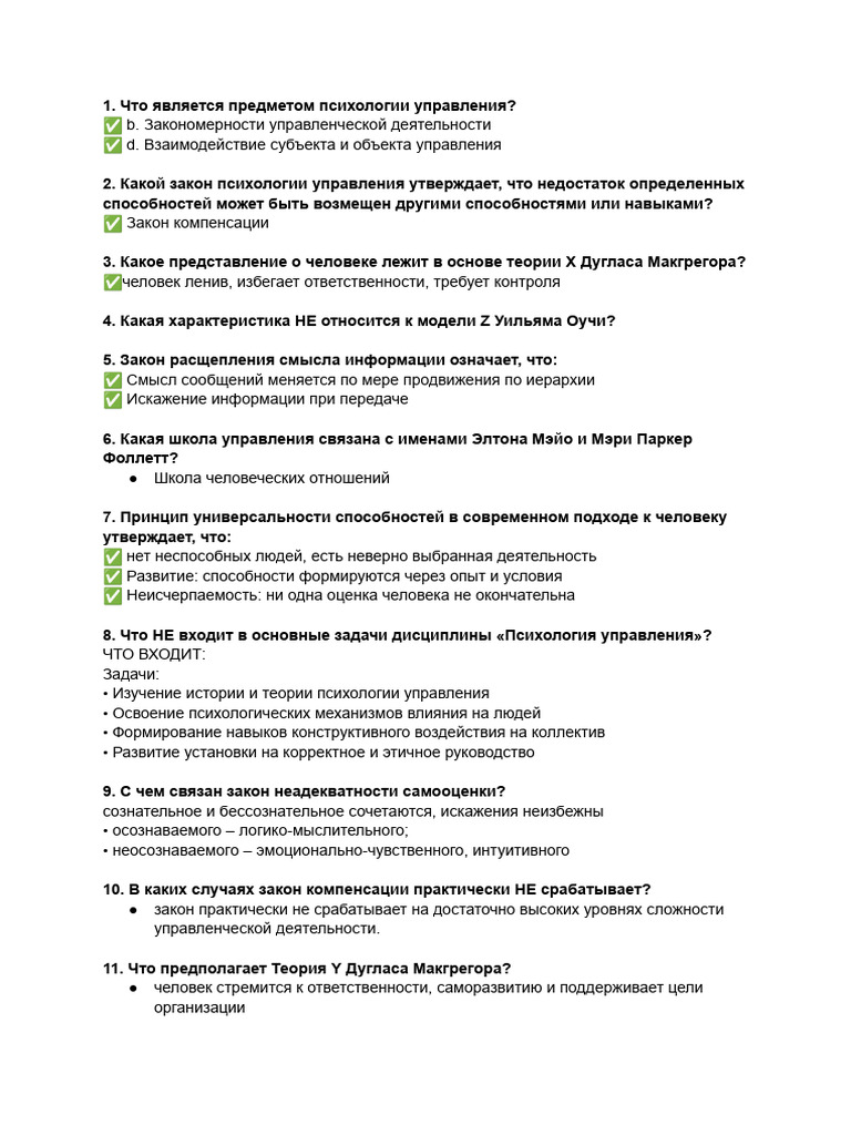 2. Какой закон психологии управления утверждает, что недостаток определенных