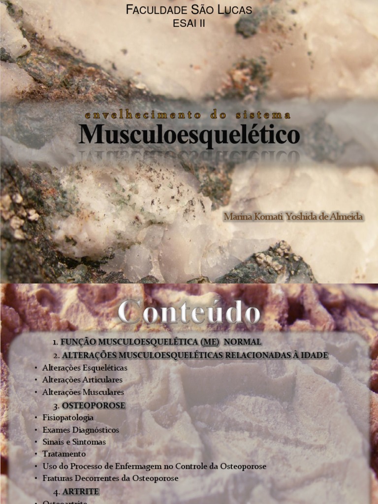 Afetam: Ossos, Articulaes e Msculos. Causam impacto significativo na vida do idoso que pode influenciar capacidade funcional. Alteraes Esquelticas Alteraes Articulares Alteraes Musculares