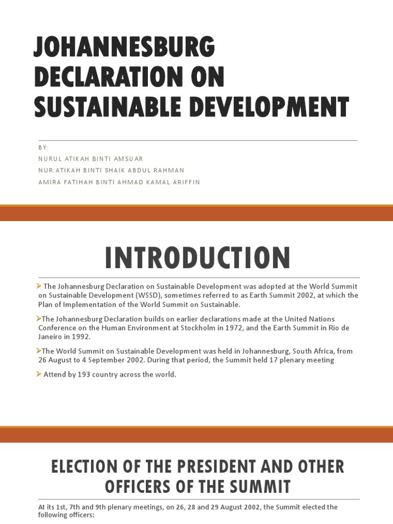 The Johannesburg Declaration builds on earlier declarations made at the United Nations